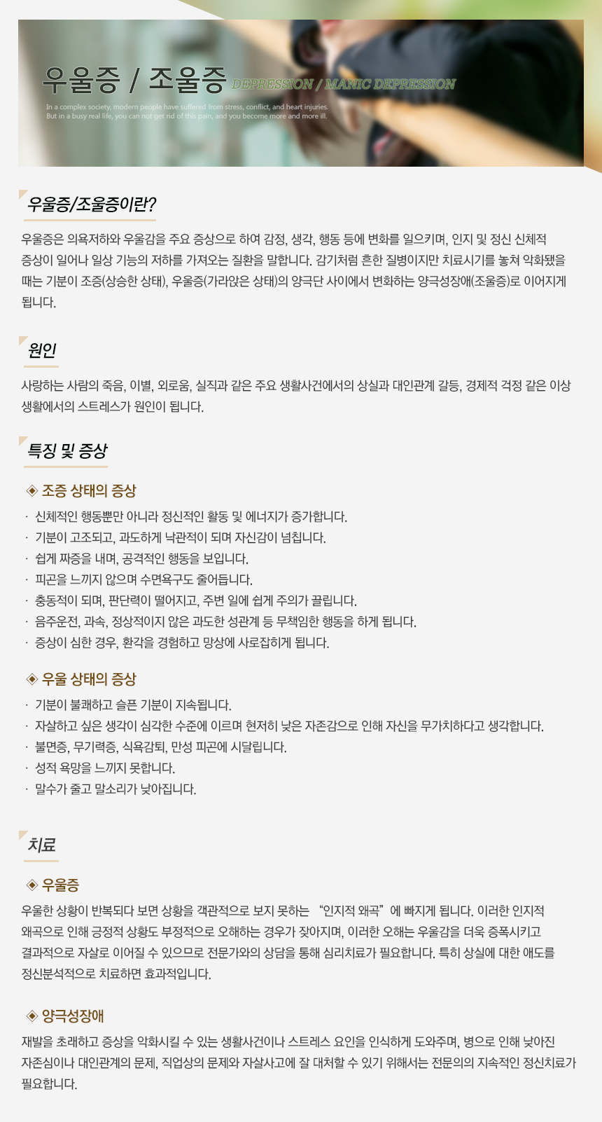 진료안내 > 우울증/조울증
